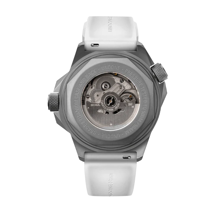 Designed for those who love bold, futuristic watches, the UNDONE AquaLume White Rubber Automatic features a glowing luminescent dial that shines in the dark. Encased in durable titanium and paired with a sleek white rubber strap, this watch is not only stylish and modern but also highly functional with automatic movement and 100M water resistance.